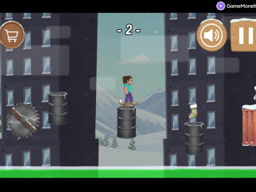 Някога карали ли сте скейтборд по покривите на сгради на Коледа? Карайте скейт по покривите и бъдете много внимателни—ако паднете от голяма височина, губите. Трябва да сте много внимателни, за да избегнете падане от високи места. Преминете над сградите и стигнете до финалната линия, като скачате над обектите в небето.