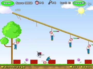 Gibbets е спасителна игра със стрелба с лък. Задачата ви е да стреляте със стрели и да прережете въжето на Гибетс. Използвайте мишката, за да управлявате лъка и посоката на стрелата и завършете всички нива. Насладете се.
